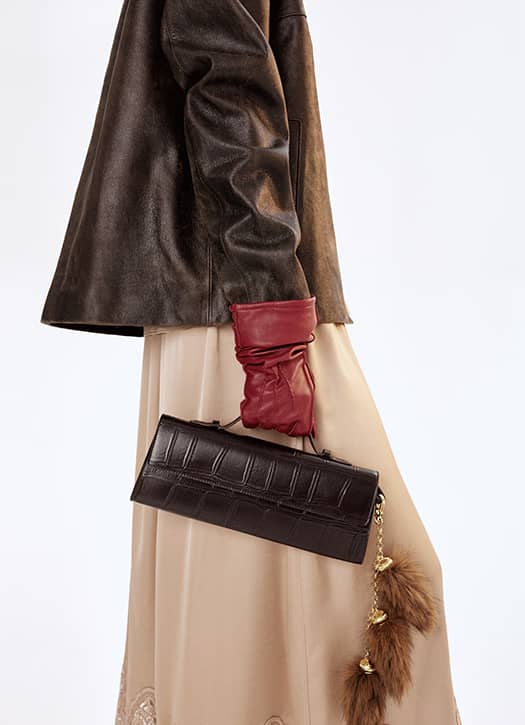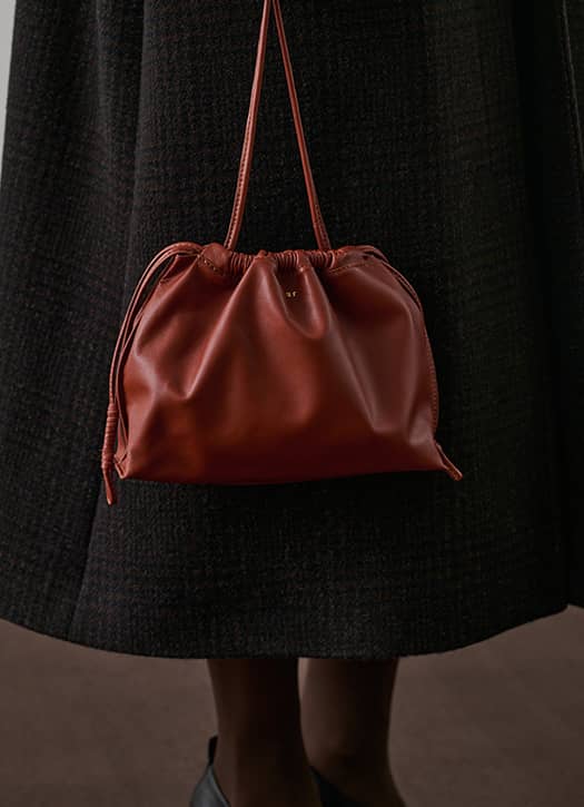 Juste assez grand pour y glisser CB, rouge à lèvres et jeu de clé, ce petit sac Soeur en cuir souple acajou devient l’accessoire idéal pour pimper n’importe quel look. Porté à l’épaule avec un pantalon tailleur pour la journée, ou du bout des doigts avec une robe midi le soir, il signe une allure minimaliste à la japonaise.
