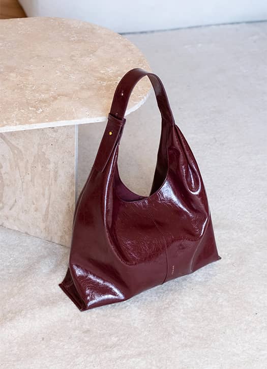 Ni trop petit ni trop grand, Petite Mendigote dévoile le sac Serion en cuir bordeaux, parfait pour filer au bureau porté en travers sur un blazer oversize, ou twister un total look jean le week-end quand on se balade dans les rues de la capitale. Son détail qu’on adore ? La chaînette dorée, qui signe tout le charme de ce sac.