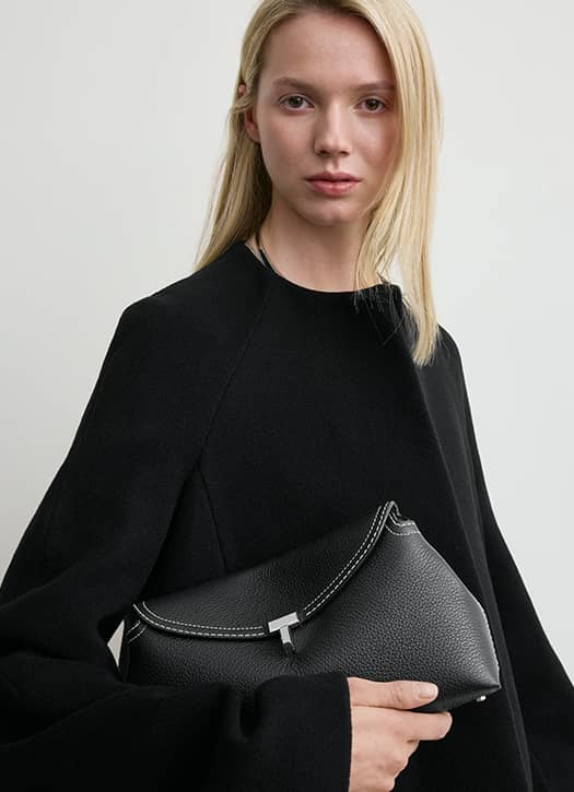 Parce que la forme baguette rappelle les it-girls des années 2000 qui portaient leur sac sous le bras, on vous a dégoté la version la plus chic de la saison signée Toteme. Noire, avec ses coutures blanches apparentes qui l’empêchent d’être basique et sa fermeture argentée, elle a tout pour plaire. On l’imagine déjà avec une tenue oversize, ou plus sexy pour un prochain date.