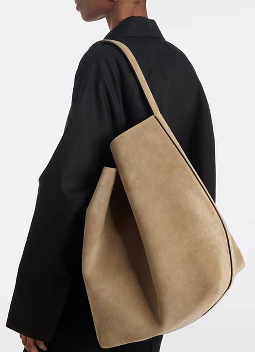 Le cabas Toteme, c’est l’allié indispensable des journées chargées, quand l’agenda déborde du matin au soir mais qu’on veut rester stylée. En daim beige, il va avec tout, adoucissant les looks colorés et sublimant les plus sobres. Un investissement sûr qui vous suivra partout !