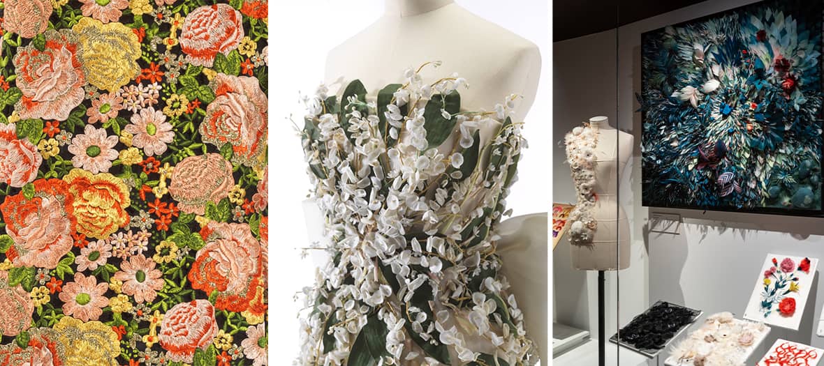 Afin de mettre en lumière ces différentes techniques, un motif incontournable de l’art textile sert de fil rouge à l’exposition : la fleur. Entre vêtements aux gros volumes et incroyables jeux de matières, accessoires, photographies ou encore outils servant à créer toutes ces pièces, plus de 350 œuvres occupent le musée pour une visite ultra-complète. Ici, la mode se déploie à 360°. Les créations haute couture dialoguent avec des pièces de jeunes créateurs… et même avec certaines réalisées spécialement pour l’exposition, redonnant sa place aux métiers méconnus du secteur. On s’extasie devant une sublime robe de mariée brodée Givenchy autant que devant un échantillon de textile observés à la loupe, pour repartir des fleurs et perles plein les yeux.