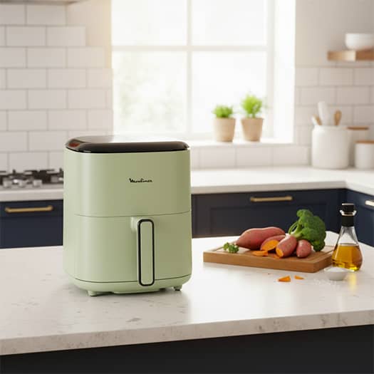 Parce qu’on en a marre d’inventer des excuses à chaque plat raté, on succombe enfin à l’airfryer. Ce modèle Moulinex se révèle compact et mignon à souhait dans sa teinte vert olive (on adore) : recettes faciles, rapides et 100 % inratables garanties. Oui, même les soirs de flemme. De quoi épater ses convives lors du prochain dîner.