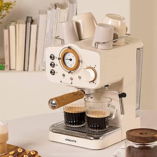Plutôt que de dépenser des mille et des cents dans un énième coffee shop, on adopte cette cafetière Create, parfaite pour préparer un cappuccino, un latte ou un espresso at home. Un style rétro qu’on adore, une buse à vapeur pour faire mousser le lait comme un barista pro, le tout compatible avec du café moulu ET des dosettes : cette cafetière design risque bien de devenir notre nouvelle meilleure amie du matin… et de sauver notre budget café.