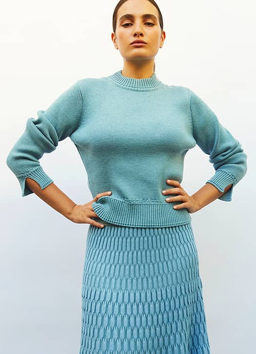 Le chic du pull se joue parfois dans le détail — et Molli le maîtrise parfaitement. Ici, tout repose sur ce bleu azur, lumineux, qui évoque déjà le bord de mer. La coupe, légèrement oversize mais structurée, dessine la silhouette sans la contraindre. Les détails tressés apportent ce supplément discret qui transforme un simple pull en pièce plus précieuse, fidèle au savoir-faire de la maison.