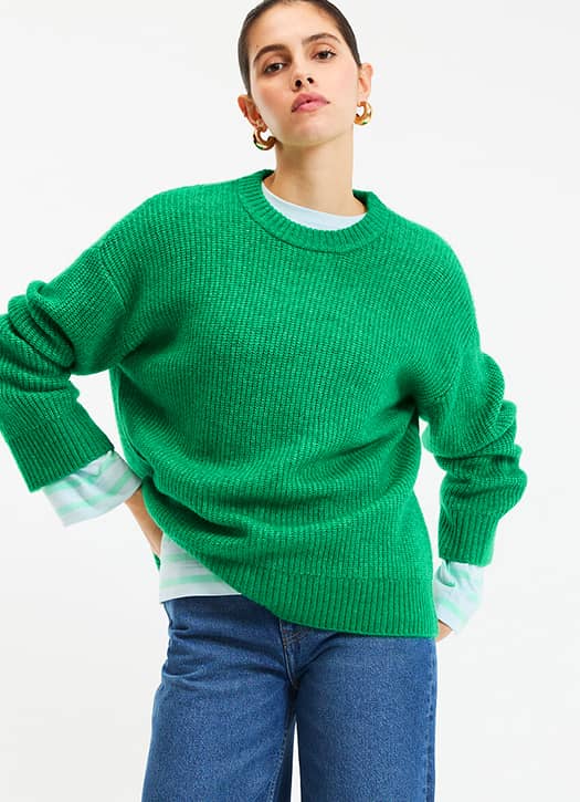 Pour celles qui n’ont pas peur des couleurs qui frappent et qui, au contraire, les recherchent, ce modèle signé La Redoute ne passe clairement pas inaperçu. Col rond, maille épaisse et mousseuse, celle qui réchauffe sans jamais gratter : tout repose sur ce vert intense, presque addictif. On le porte en plein hiver, ou lors d’une soirée d’été un peu fraîche, juste pour le plaisir de la couleur. Un pull plein de personnalité, à l’image de celle qui le choisit, le tout à prix doux.
