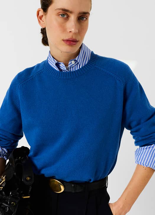 Le bleu électrique s’impose sans détour. Dans la nouvelle collection de Gerard Darel, ce pull col rond incarne le bon basique — celui qui simplifie vraiment le quotidien. On glisse une chemise en-dessous, on ajoute un beau jean 101, et l’allure se construit sans effort. Une pièce fiable, bien pensée, qui risque vite de devenir votre pull fétiche.