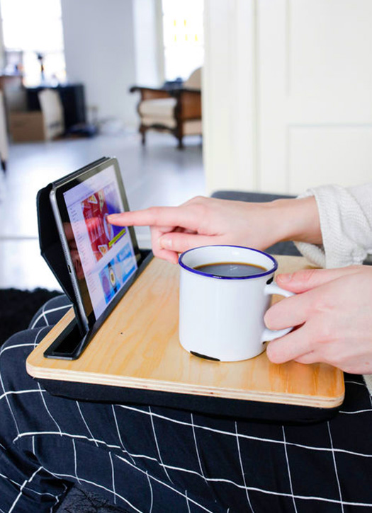 Après avoir passé 4h sur le même bureau, on se blottirait bien sur le canapé pour finir sa to-do list de la journée. Ce support d’ordinateur/tablette est LE gadget à avoir pour travailler plus confortablement (et pour, accessoirement, ne pas se brûler les genoux avec son laptop en surchauffe).