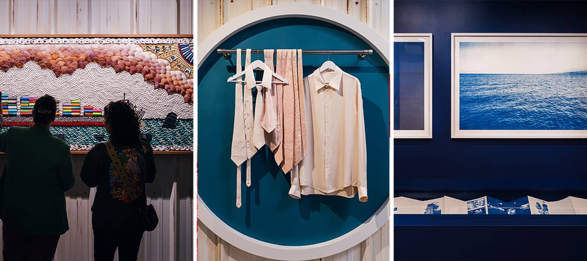 Embarquement immédiat pour un voyage au cœur de la matière, de la créativité et de l’artisanat à mi-chemin entre Tokyo et Paris. Entre sculpture, céramique, textiles ou même installations lumineuses, on déambule au milieu de toutes ces incroyables créations reliant le savoir-faire emblématique japonais à celui de la France. Ici, l’art délicat du tressage ajiro-bari dialogue avec le travail du plissé d'Atelier Lognon de la Maison Lemarié ; la céramique du maître Zengoro Eiraku se retrouve pimpée de fleurs et d’insectes par la maison de broderie française Atelier Montex, quand les fleurs imprimées façon karakami – technique traditionnelle japonaise – font face à celles tout en volume de la Maison Lemarié.