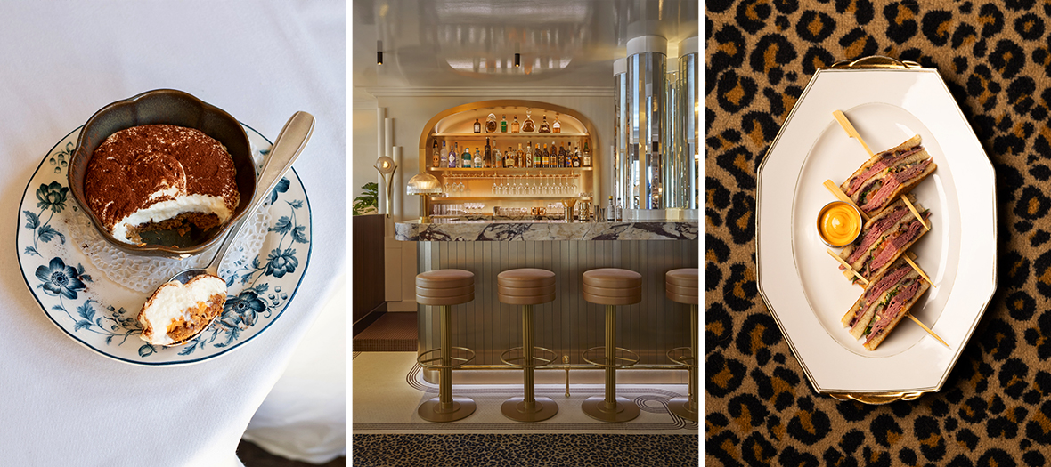 La marque de fabrique du Fitz Group ? Fédérer le parfait ratio entre quadras stylés, jeunesse dorée et V.I.P. de passage, hostant notamment les plus belles fêtes de la Fashion Week. Il faut dire que d’emblée, le lieu en jette et active illico l’envie de se prendre en photo pour une story Insta. Appliques, miroirs, luminaires, boiseries, velours dorés et moquette léopard : l’architecte Sophie Lacroix (Dandino, Siena) a eu carte blanche pour dépoussiérer cette institution oubliée dans une version Gatsby-compatible, clairement inspirée par les codes Art déco. On se croirait dans une cabine de l’Orient Express ! Une beauté amplifiée en journée par la vue sur la Bourse à travers les grandes fenêtres…