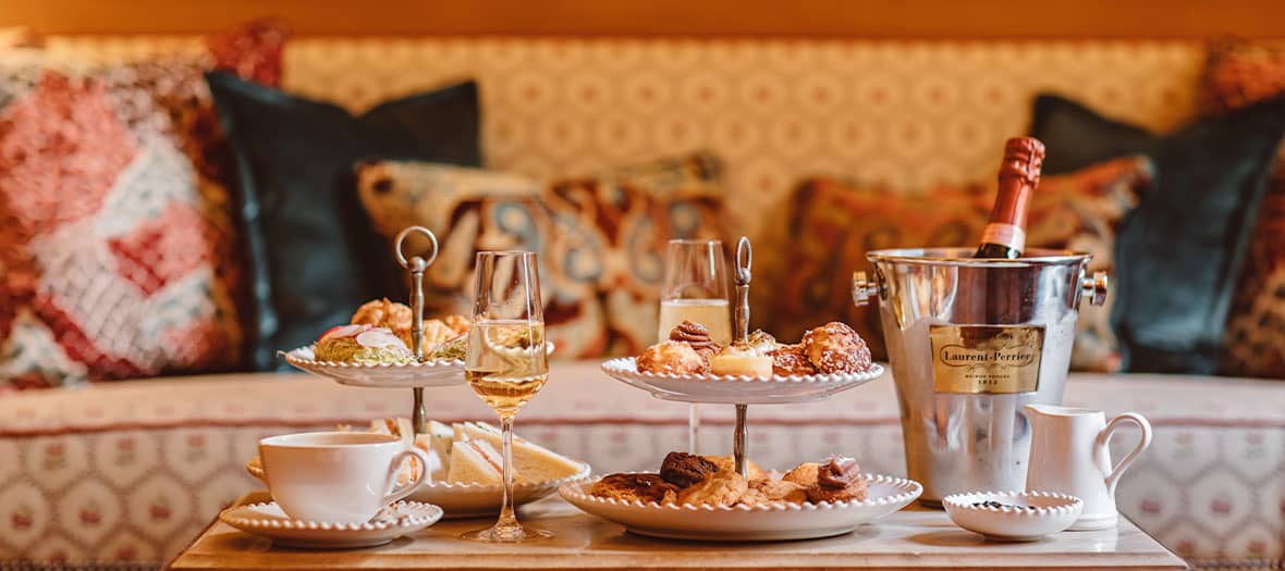 Au programme de votre festin : un serviteur plein de petits brownies, pain d’épices, biscuits gingerbread et carrot cake, servis à l'anglaise avec une tasse de thé Mariage Frères. Sans oublier une coupe de champagne pour la touche parisienne.