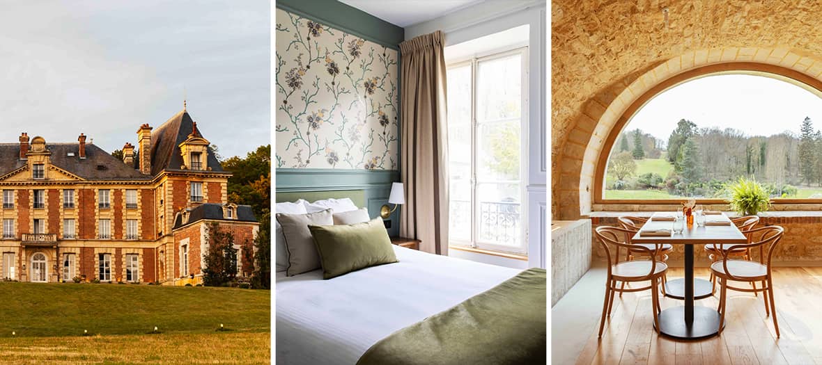 Pour un week-end end à deux tours de roue de Paris, direction ce 3 étoiles en plein Vexin. Construit dans la deuxième moitié du XIXè par Ambroise Firmin-Didot et entouré d’un parc de 65 hectares, on trouve, derrière sa façade de pierres et de briques, 33 chambres et suites. Leur déco a su garder le charme d’une ancienne maison de famille mixée à une ambiance comme on aime : parquet Point de Hongrie, meubles chinés… Le top en amoureux : l’une des 3 Juniors suites arborant une vue de rêve sur le parc classé et les jardins ; et en famille : les 6 chambres n’attendent que vous ! Et, pour une escapade en bande, va pour le gîte (6 personnes) dans le parc. À la Cambrousse, le restaurant gastronomique, la nature joue les stars grâce aux fruits et légumes issus des jardins en permaculture (3 000m²), sans oublier le miel des ruches. Enfin, les enfants sont rois ici : le parc est un vaste terrain de jeux pour jouer à cache-cache, grimper aux arbres et le poulailler, une vraie surprise pour les petits citadins.