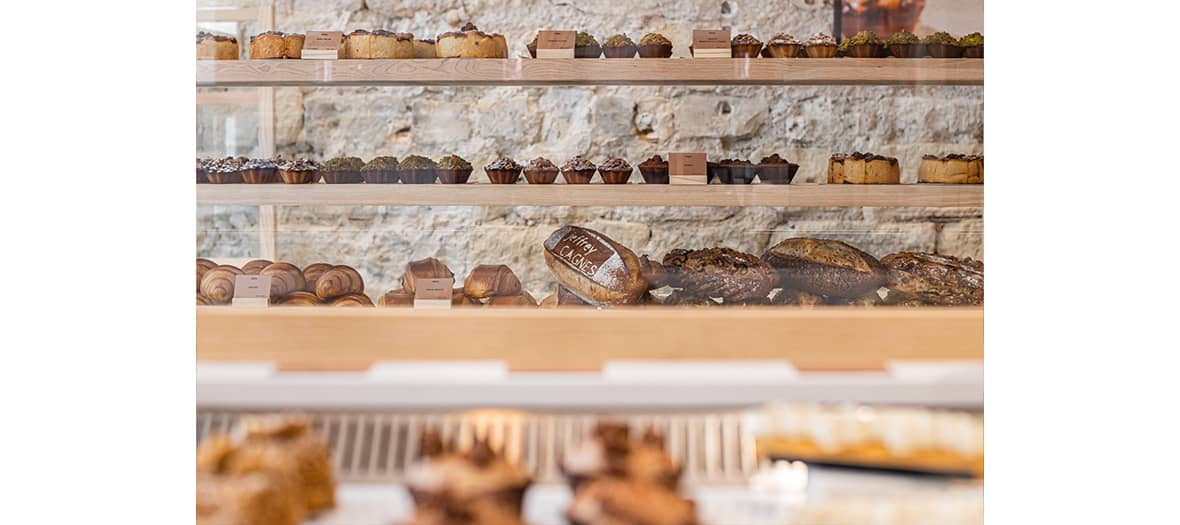 Pour sa première adresse éponyme, Jeffrey Cagnes a choisi les Batignolles, un quartier bobo, familial, branché… et surtout vivant. Une approche authentique et décomplexée que l’on retrouve à l’intérieur de la boutique au style rétro-industriel designée par l’agence Sapide : mur en pierre, détails en cuivre, lampes à filament, le tout végétalisé à coups de pots de basilic qui diffuse un doux parfum naturel.