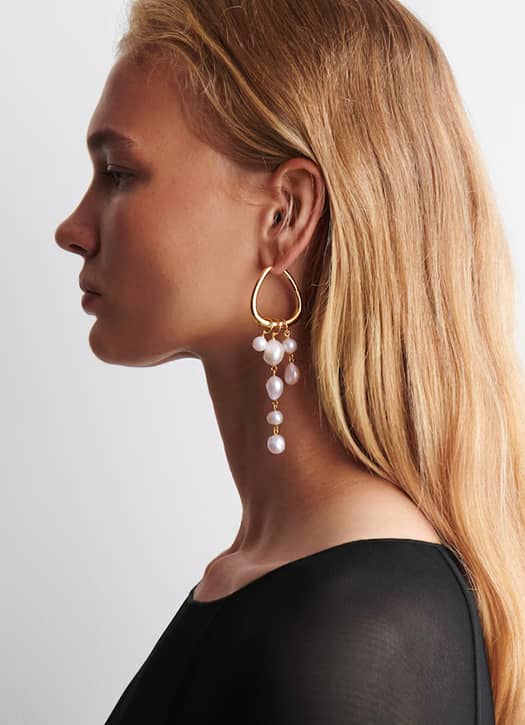 Les boucles d’oreilles pendantes ont ce pouvoir subtil : elles allongent la nuque et apportent instantanément ce truc en plus. Chez COS, on adore ce modèle doré ponctué de perles, délicat mais affirmé. Le jour, elles passent très bien au bureau car elles restent mesurées. Le soir, avec cheveux dégagés et joli top, elles deviennent un bijou signature.