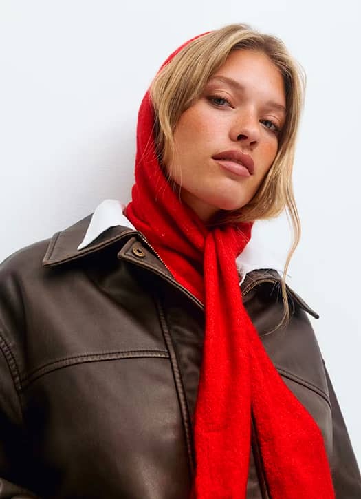 Sortie tout droit des séries américaines qu’on regardait dans les années 2000 (coucou The OC), l’écharpe fine fait son grand retour. Longtemps introuvable ou compliquée à chiner, on l’attrape par exemple chez Gina Tricot dans une version rouge, audacieuse au premier regard, mais en réalité, qui matche aussi bien avec une veste claire, un manteau marron ou un trench noir. On la porte en un tour nonchalant autour du cou, ou à moitié nouée sur la tête pour tenir le rôle principal de nos looks d’automne.
