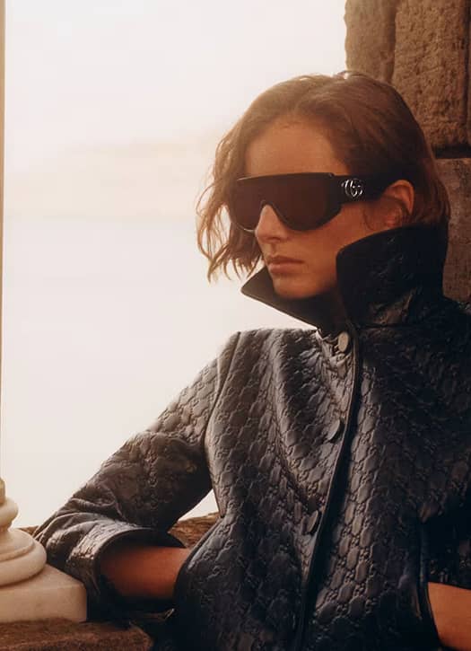 Les lunettes sont devenues un accessoire du quotidien : qu’il fasse gris, grand soleil ou pour un simple rendez-vous en ville, elles signent une silhouette. Et la tendance est claire depuis cet été : on oublie les petites montures fines et les formes papillon trop sages, place aux solaires XXL qui cadrent le visage et imposent l’attitude. Gucci propose notamment cette paire noire rehaussée de verres bordeaux, avec un logo assumé sur les branches. Car oui, le retour du monogramme est bien en marche, nourri par la renaissance du vintage…