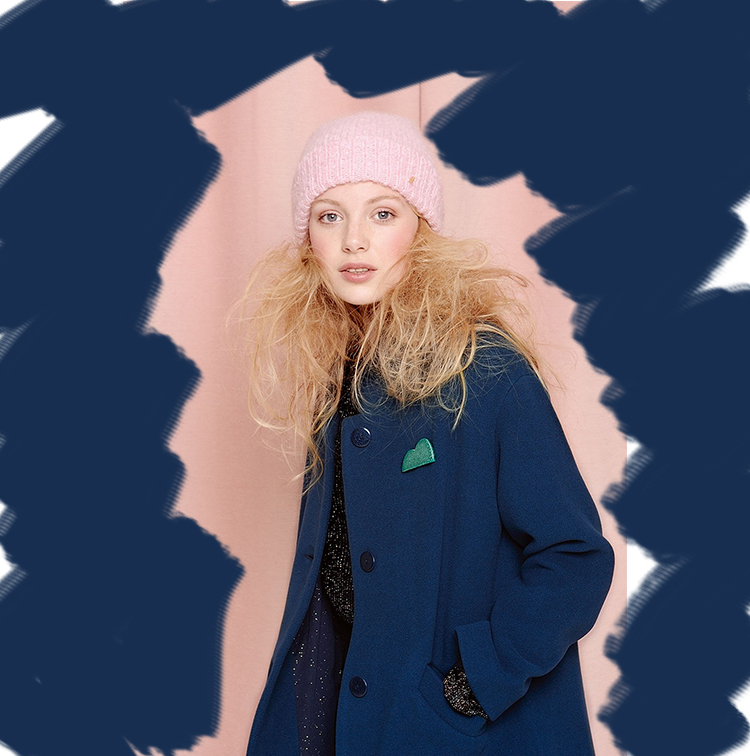 Aussi beau sur les blondes que les brunes, un bonnet bijou bleu canard pour rehausser le teint et garder la tête au chaud.