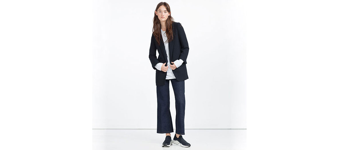 Blazer long en viscose, acrylique et laine, Zara. 59,95 €