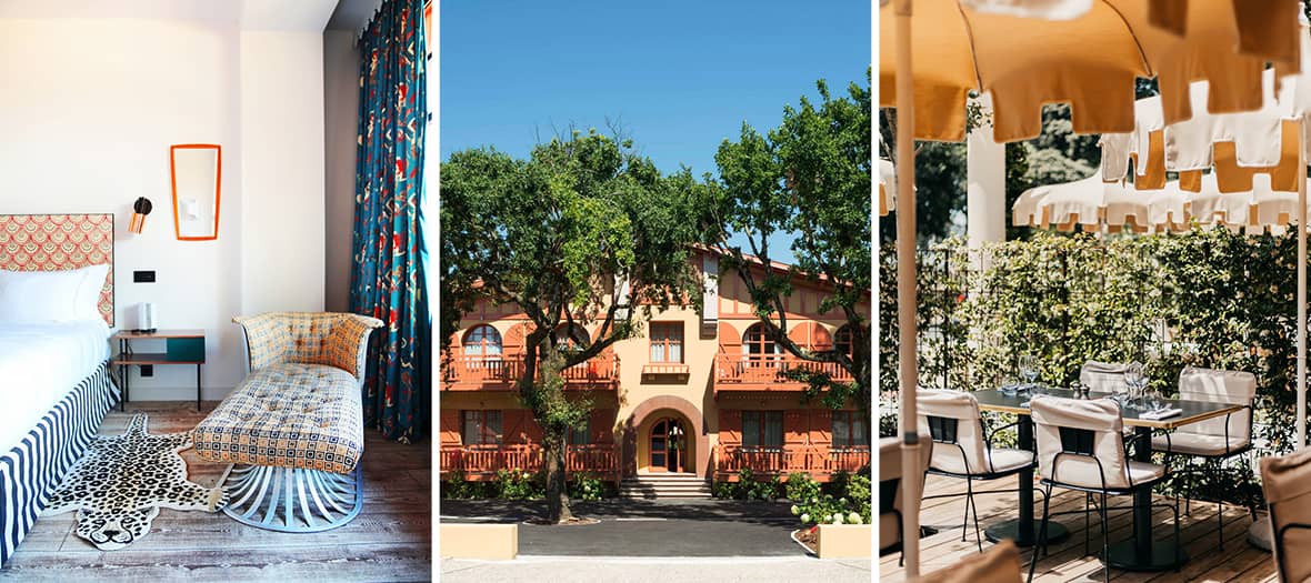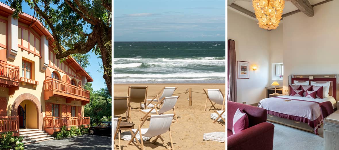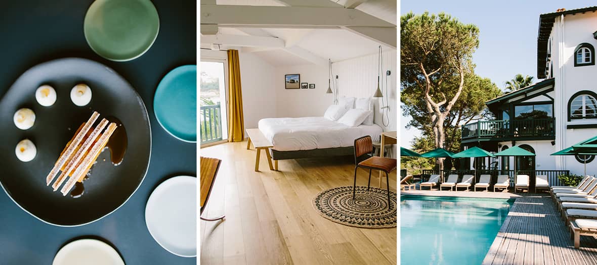 Adresse mythique d’Hossegor depuis les années 50, cet hôtel du Sud-Ouest s’est offert un total relooking. Membre de la collection des Domaines de Fontenille, ce 4 étoiles ouvert en juin 2019 abrite 19 chambres et 6 suites, certaines avec terrasse ou balcon. On aime le choix d’un blanc lumineux mettant en valeur l’architecture de cette belle villa Art déco, typique de la côte Basque avec ses plafonds voûtés, ses fenêtres et baies vitrées arrondies ponctuées de boiseries vert sombre. On aime les clins d’œil à la côte Est des États-Unis qui s’invitent un peu partout : fauteuils Adirondack et planches de surf sagement alignées. La déco des chambres se pare de matériaux naturels : murs blancs lambrissés, planchers de bois clair, tapis de sisal… le tout a un petit air années 50, histoire de souligner les origines de l’hôtel.