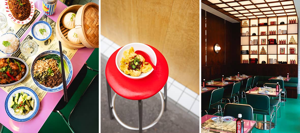 On adorait déjà ses adresses du canal Saint-Martin, Etienne Marcel, Bastille… La Bao Family de Céline Chung et Billy Pham remet le couvert (ou plutôt les baguettes) et s’installe pour la première fois dans les quartiers chics du 8e arrondissement, du côté de Ternes exactement. Évidemment, Petit Bao Ternes (PBT pour les intimes) claque déjà de l’extérieur, avec une mignonne terrasse donnant sur la salle au décor pop pensé de A à Z par Céline. Chaises vertes, tables roses, toilettes poissons, cuisine ouverte, touches de bois bruns : on a difficilement fait plus cool et moderne.