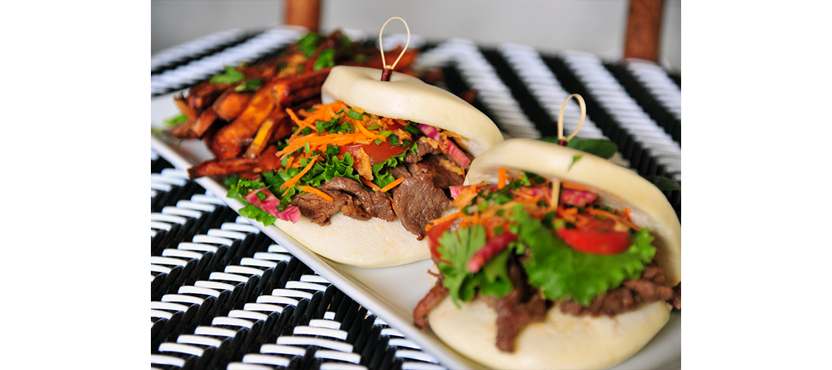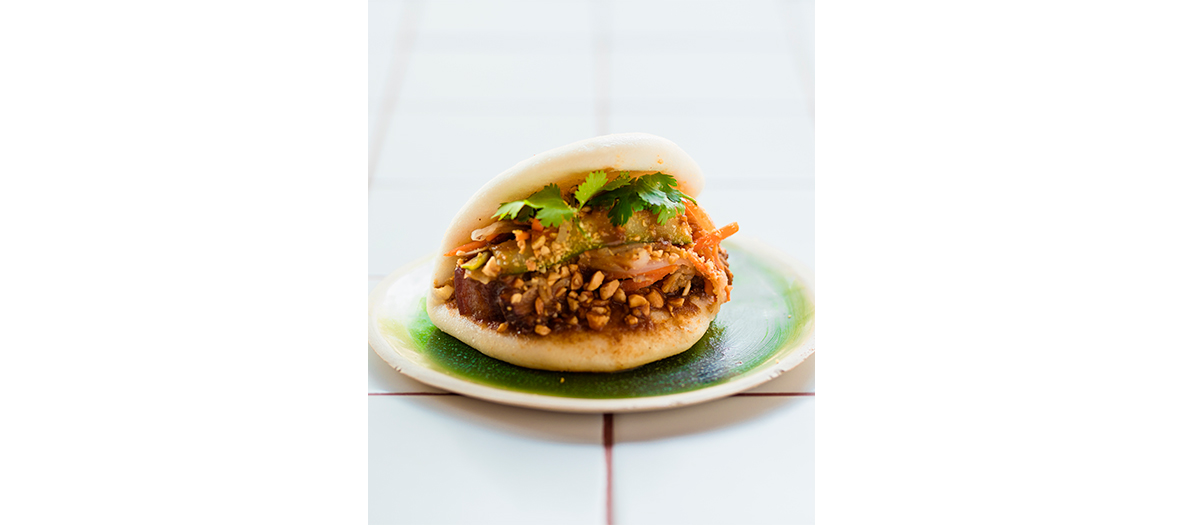 Ceci est une curiosité dans le délire sino-américain génial. En version cheese-burger avec un sublime steak de black Angus et du cheddar et ses déclinaisons fast-good, un burger finalement assez classique à ceci près que son pain bao en fait une junk-fooderie orgasmique.