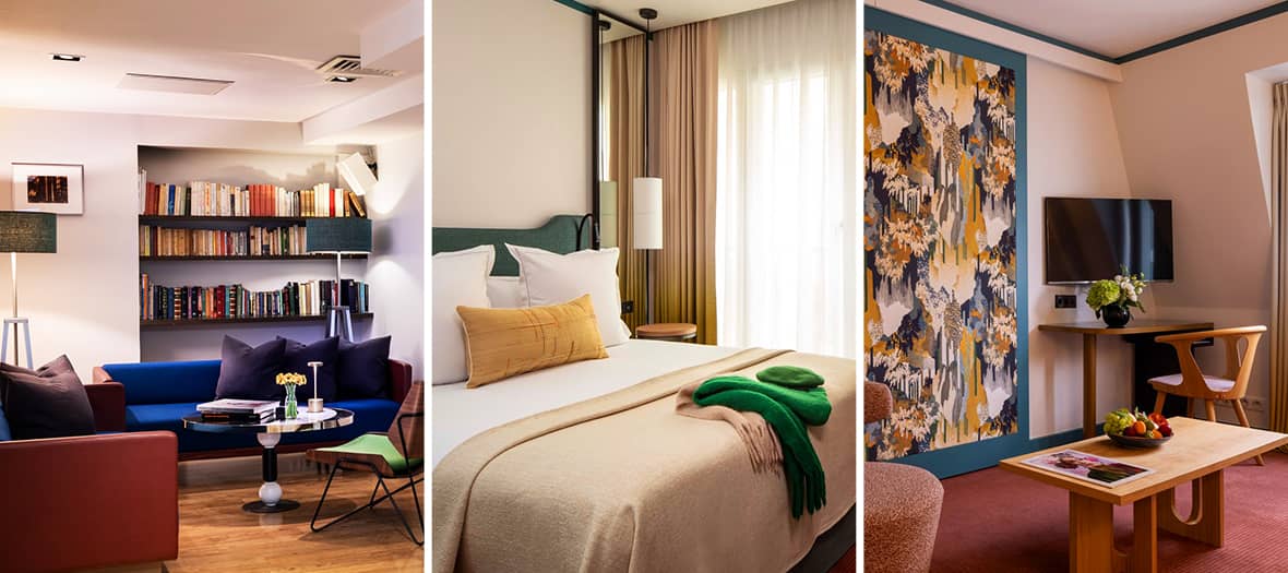 Dès l’entrée, on ressent un sentiment d’exclusivité et de douceur, grâce à des jeux de matières nobles, à un mobilier contemporain, à des touches artistiques et à la lumière naturelle traversant les espaces. Rénové et redécoré par Pascal Allaman et Géraldine Prieur en 2025, l’établissement est en accord total avec l’esprit du quartier, vibrant et feutré, et s’avère un parfait équilibre pour voyageurs amoureux de l’art de vivre parisien.