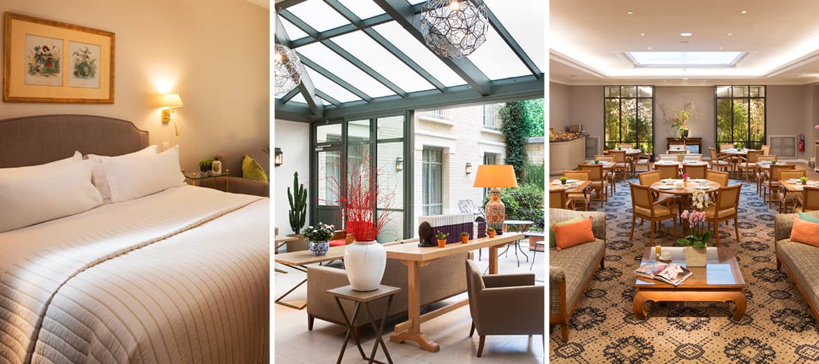 Dès que vous franchissez la porte, vous êtes saisis par l’ambiance cosy, mêlant élégance classique et touches modernes, avec un joli jardin d’hiver pour se détendre ou savourer un café. Les espaces communs sont lumineux, calmes et parfaits pour une pause entre deux explorations parisiennes. On ressent ici une vraie harmonie grâce à une richesse historique qui habite les murs du lieu. En effet, ici s’organisaient des rencontres diplomatiques ponctuées de jazz et de rythm’n’blues dans les années 1950 et 1960.