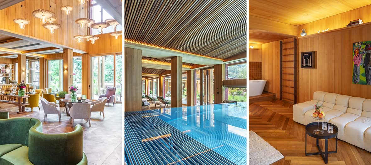 À cela s’ajoute une offre bien-être singulière, entre yoga, médecine traditionnelle chinoise et enseignements dispensés par un maître Shaolin. Côté hébergement, les chambres et suites, toutes habillées de matériaux nobles dans un esprit tyrolien chic, ouvrent sur les paysages verdoyants des alpages. La restauration ne fait pas exception à l’exigence de l’adresse : les plats végétariens ou carnés sont élaborés avec les produits issus de la ferme de l’hôtel, et le restaurant gastronomique Tenzo propose une carte créative pensée selon les principes de la diététique chinoise. Équitation avec les lipizzans, golf, tennis ou randonnées dans les montagnes environnantes viennent compléter ce séjour placé sous le signe de l’énergie retrouvée. Une retraite holistique, à la croisée du luxe alpin et des traditions de bien-vivre.