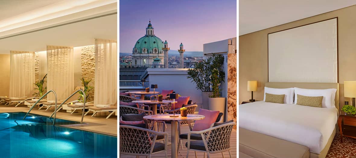 À deux pas du Stadtpark, sur le prestigieux boulevard de la Ringstrasse, le Ritz-Carlton Vienna déploie tout le faste viennois dans un écrin néo-classique grandiose, né de la fusion de quatre anciens palais. Un cadre historique, certes, mais que l’hôtel sublime par une élégance contemporaine parfaitement maîtrisée. Les 200 chambres et suites, au confort exceptionnel, cultivent cette alchimie entre héritage impérial et design actuel, avec des matériaux nobles, une technologie discrète et un silence rare en plein cœur de ville. Dans ce cocon à l’abri du tumulte, on prend le temps d’apprécier l’exceptionnel spa Susanne Kaufmann, avec ses soins sur-mesure et sa piscine de 18 mètres, la plus longue de Vienne. Côté plaisirs de la table, les papilles sont à la fête : steaks d’exception au Dstrikt, cocktails d’auteur au D-Bar, et apéritifs gogourmets au Pastamara – Bar con Cucina. En point d’orgue, l’Atmosphere Rooftop Bar, perché au 8e étage, dévoile une vue panoramique sur les toits de la capitale autrichienne, comme un dernier hommage à la beauté majestueuse de la ville. Un hôtel spa à Vienne taillé pour les voyageurs en quête d’un luxe rassurant, raffiné et sans ostentation.