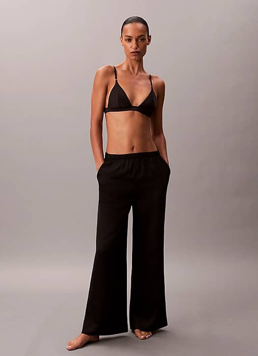 La tendance du caleçon qui dépasse avec le logo Calvin Klein a peut-être fait son temps, mais la marque ne s’arrête clairement pas là. Preuve en est avec ce pantalon en soie noir, minimal et élégant, qui coche toutes les cases. Fluide et agréable à porter, c’est le genre de pièce qu’on enfile pour le confort, mais qui fait instantanément plus chic, même à la maison.