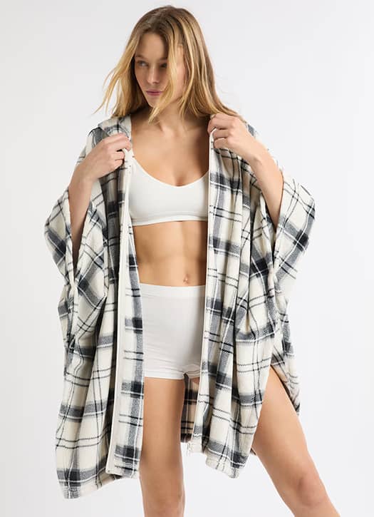 Soyons honnêtes : le poncho fait partie des pièces les plus confortables de l’hiver. Mais bien porté, il peut aussi devenir ultra-désirable. Ouvert, avec un petit short et un débardeur, il se transforme en pièce maîtresse d’une soirée sur canapé. Coup de cœur pour celui repéré chez Etam : à carreaux et manches en polaire, il s’avère parfait pour rester bien au chaud tout l’hiver.