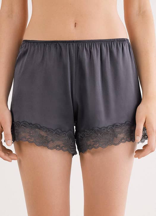 Évidemment, Intimissimi offre une lingerie à tomber tout en restant confortable. Mais la marque italienne propose aussi une catégorie pyjama qu’on adore, et notamment leur short en soie bordé de dentelle pour la jolie finition. Le genre de pièce qui n’en fait pas trop, mais qui a quand même ce petit quelque chose en plus. Un peu comme un beau soutien-gorge que personne (ou presque) ne voit vraiment, mais qui change tout. On se sent bien avec ce supplément d’allure, juste pour soi.