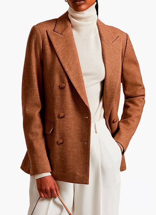 Qui mieux que Ralph Lauren pour dealer les parfaits blazers ? Exit le synthétique : on mise sur des matières naturelles avec une compo laine et coton qui s’adapte à toutes les températures. On imagine ce modèle avec un joli col roulé ivoire et une jupe crayon ou un pantalon flare en velours côtelé.