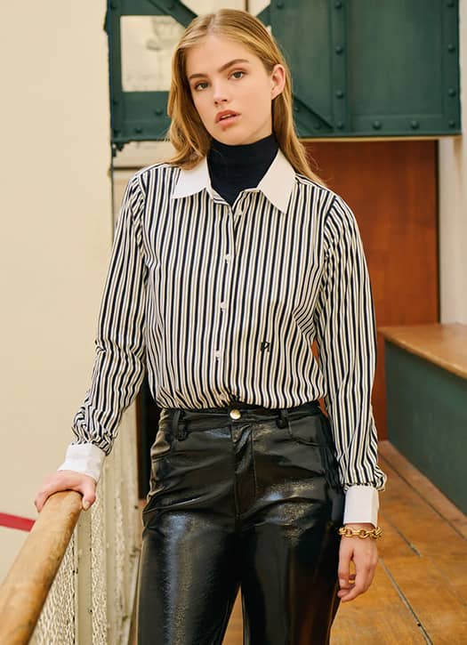 C’est LE must à posséder dans son vestiaire, qu’on enfile les jours en manque d’inspi pour afficher une silhouette old money sans effort. Cette chemise Petite Mendigote nous fait de l’œil avec ses larges rayures qui contrasteront parfaitement le coolness d’un pantalon cargo ou en cuir, à moins de s’en servir au bureau pour faire vibrer un beau tailleur uni.