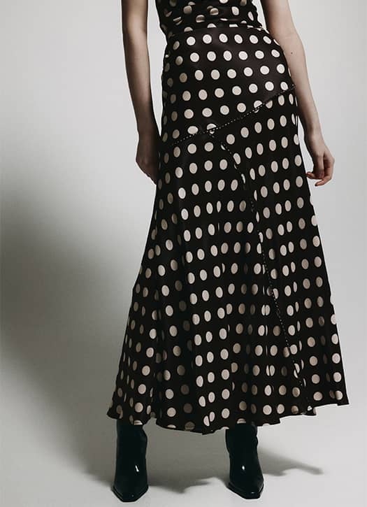 Une jupe satinée à pois