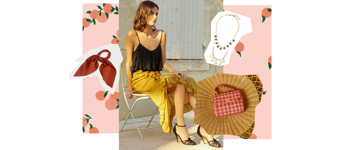 Il tourne avec le vent, dévoile la jambe avec sensualité et se dégaine aussi bien avec des baskets que des stilettos. Le jupon asymétrique de Mes Demoiselles va de paire avec un petit top à bretelles spaghetti, un collier doré à coquillages et un adorable sac en paille motif vichy. Le résultat ? Un ensemble sexy et sans chichis qui fera tourner toutes les têtes.