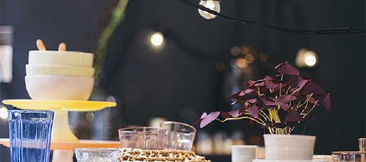 Tour d’horizon : suspensions géométriques über stylées ; photophores en verre coloré (20€) ou en laiton ; coussins romantiques ; assiettes en céramique à présenter en accumulation ; torchons vichy pastel (23€) ; paniers à quadrillage en cuivre…