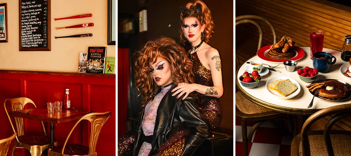 Cocoricains, le restaurant pimpé à la sauce US qu’on adore près des Grands Boulevards, cède parfois sa salle aux drag queens Minima Gesté et Arsenika qui viennent ambiancer la salle comme jamais. Timides s’abstenir ! Le concept ? Vous réservez votre brunch, arrivez plus motivés que jamais et faites la connaissances de ces deux bad bitches délicieusement intrusives qui font de votre repas du dimanche une véritable fiesta endiablée. Lip sync, pluie de billets (des drag dollars sont à acheter sans obligation au comptoir) et intéractions hilarantes viennent ponctuer un vrai brunch à l’américaine : comptez 33 € pour le menu spécial avec boisson et cake du jour, plat salé et plat sucré. Parmi les bangers à la carte : un œuf fermier poché, épinards et sauce hollandaise sur pain brioché toasté, des tenders de poulet fermier frits servis sur un trio de pancakes maltés ou encore un cake moelleux à la banane, ananas et noix de pécan toastées, le tout nappé d’un glaçage démoniaque au cream cheese.